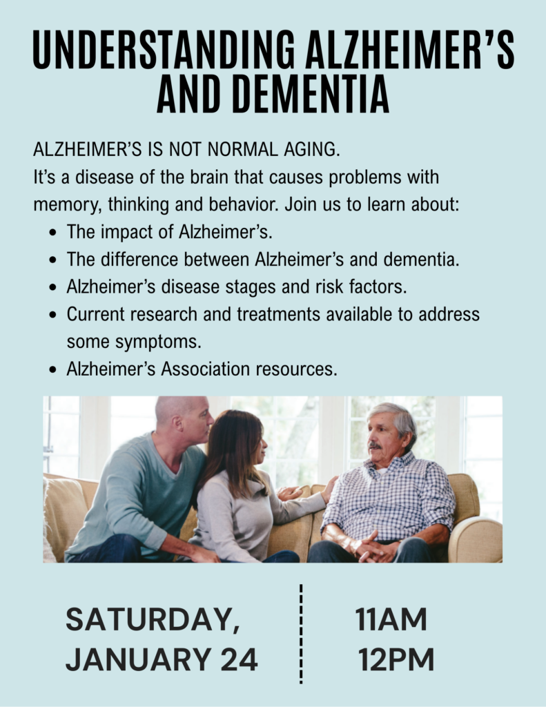Understanding Alzheimer’s and Dementia: Saturday, January 24 | 11am-12pm