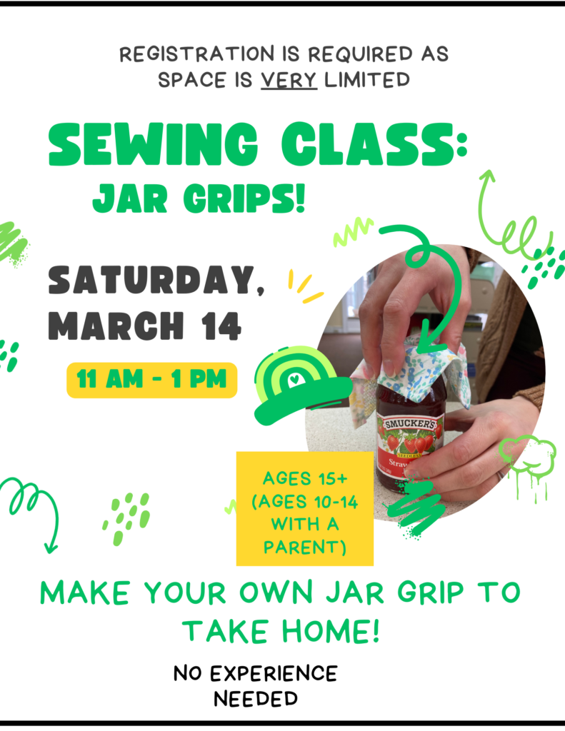 Sewing Class – Jar Grips: Saturday, March 14 | 11am-1pm